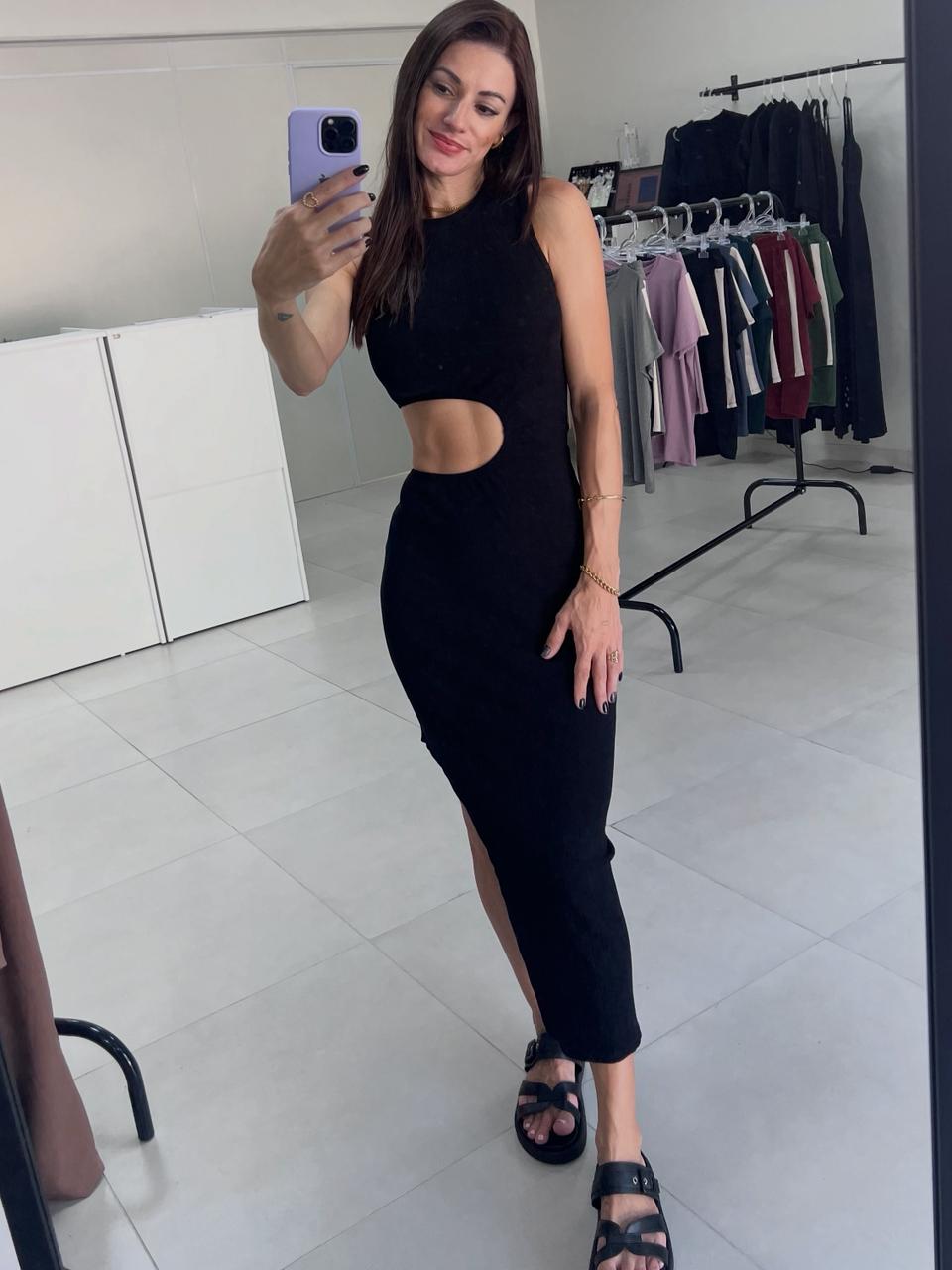Lindo vestido sexy na cor preta. Feito em viscose e elastano.